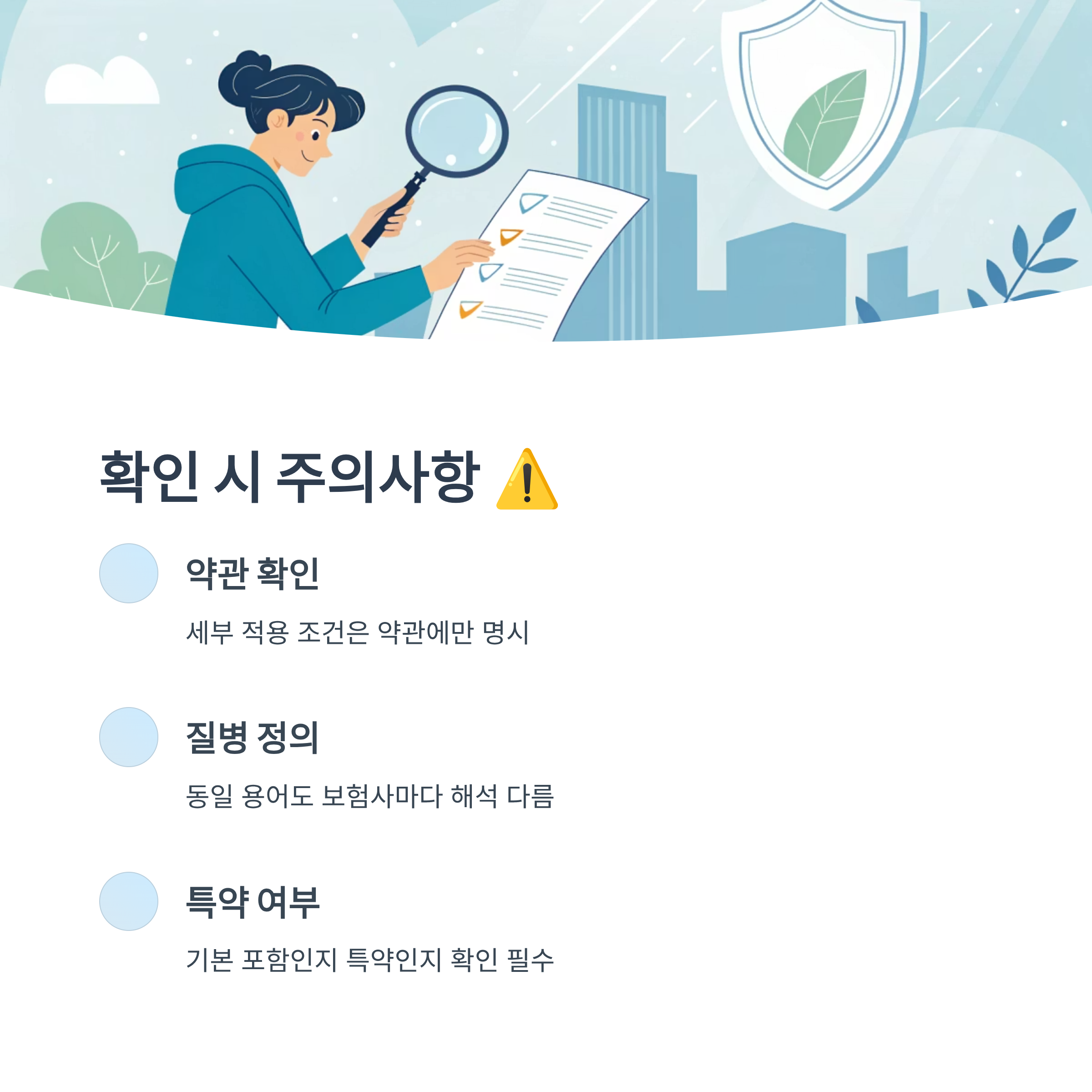 첫 번째로 반드시 약관을 직접 확인해야 해요. 설명서나 홈페이지에 나와 있는 정보는 요약된 것이라, 실제 세부 적용 조건은 약관에만 명시되어 있는 경우가 많거든요. 특히 ‘진단 기준’과 ‘적용 시점’ 부분이 중요해요.