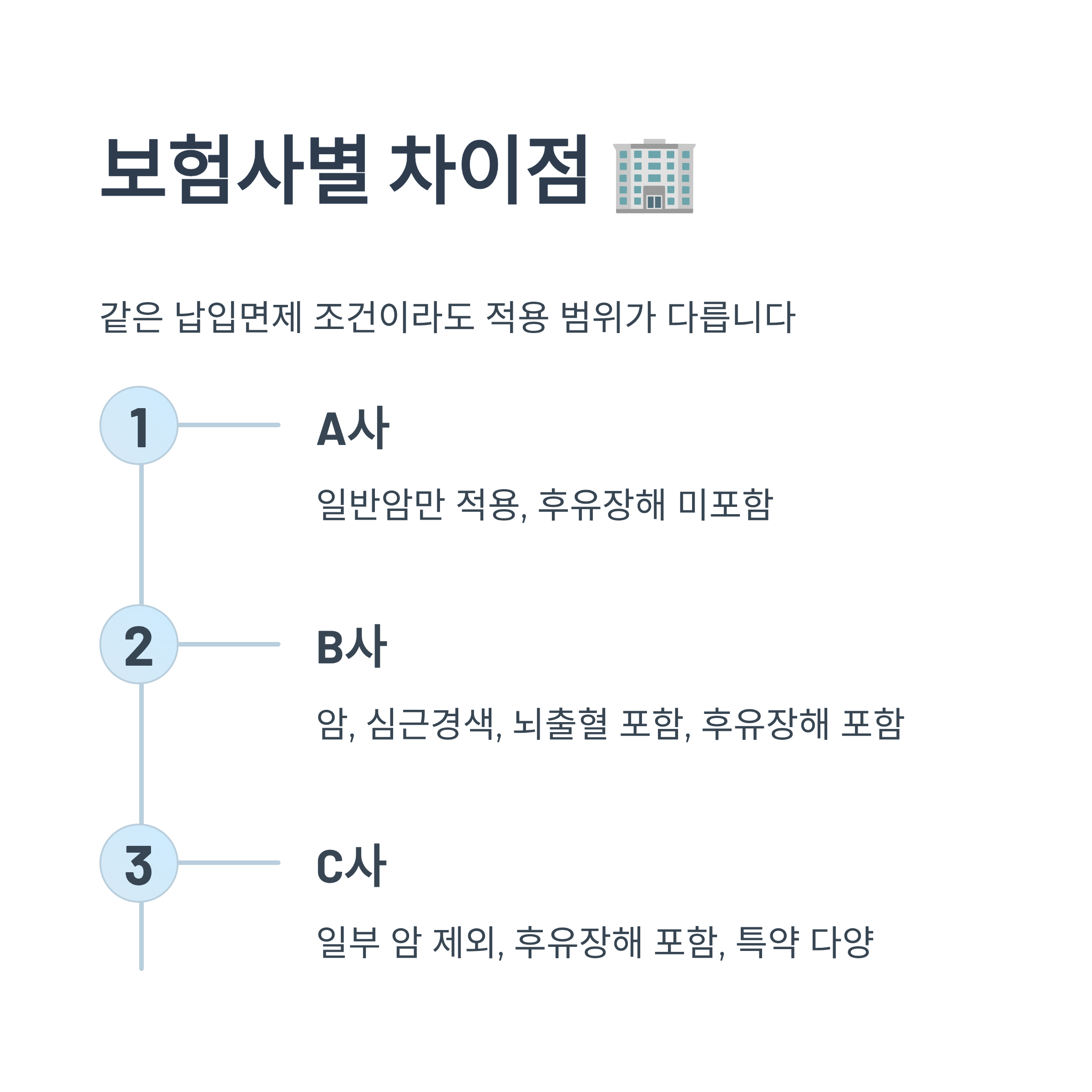 이처럼 보험사마다 적용 조건과 상세 기준이 다르기 때문에 반드시 본인이 가입한 상품의 약관을 잘 살펴봐야 해요. 동일한 보장 내용처럼 보여도, 실제로는 큰 차이가 날 수 있어요.