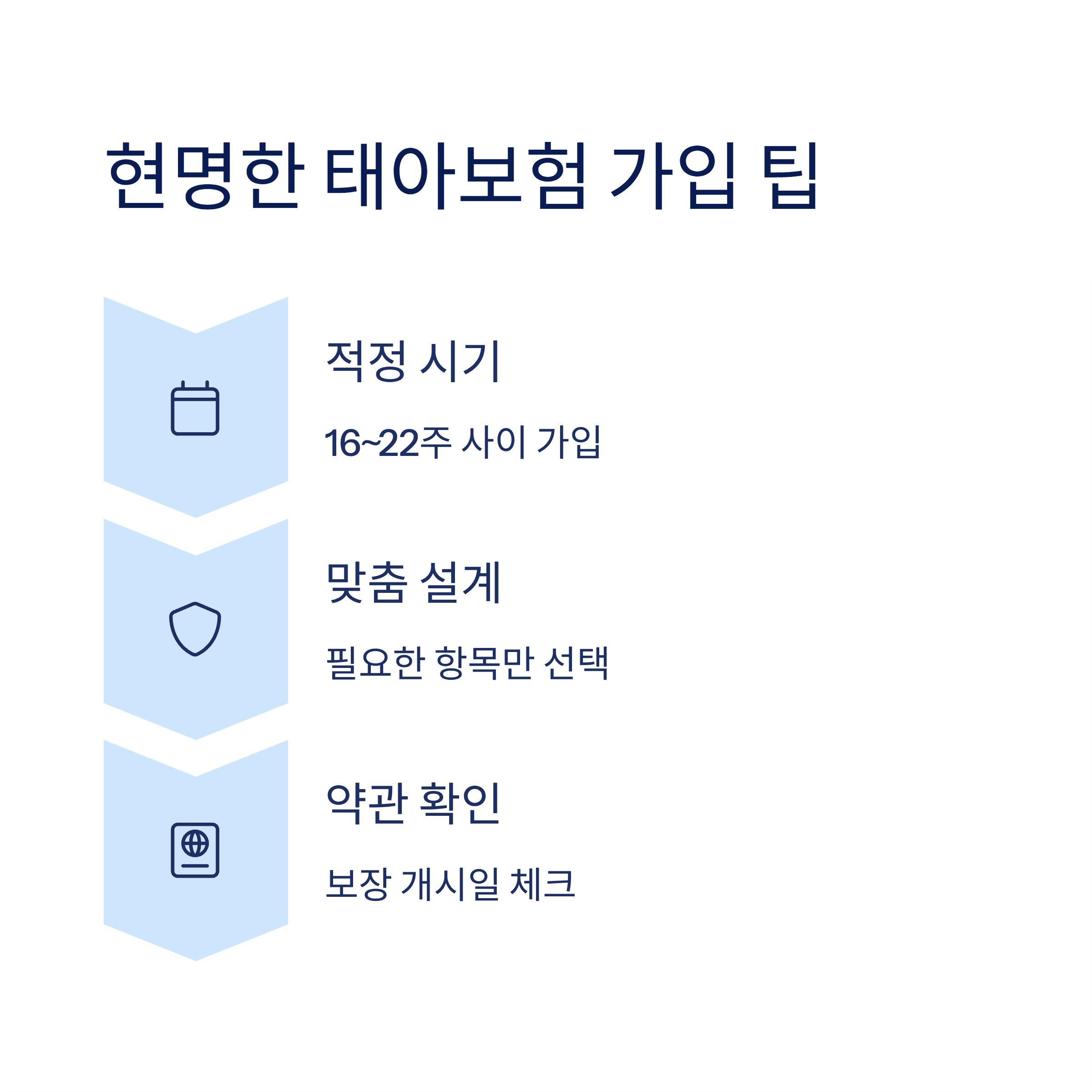 가입 시기부터 꼼꼼히 따져보는 게 중요해요. 가장 좋은 가입 시기는 임신 16주~22주 사이인데, 이때 대부분의 주요 보험사들이 태아보험 특약을 제공하고 있어요. 이 시기를 지나면 일부 특약이 제외되거나 가입 자체가 어려워지는 경우가 있어서 타이밍을 놓치면 안 돼요.