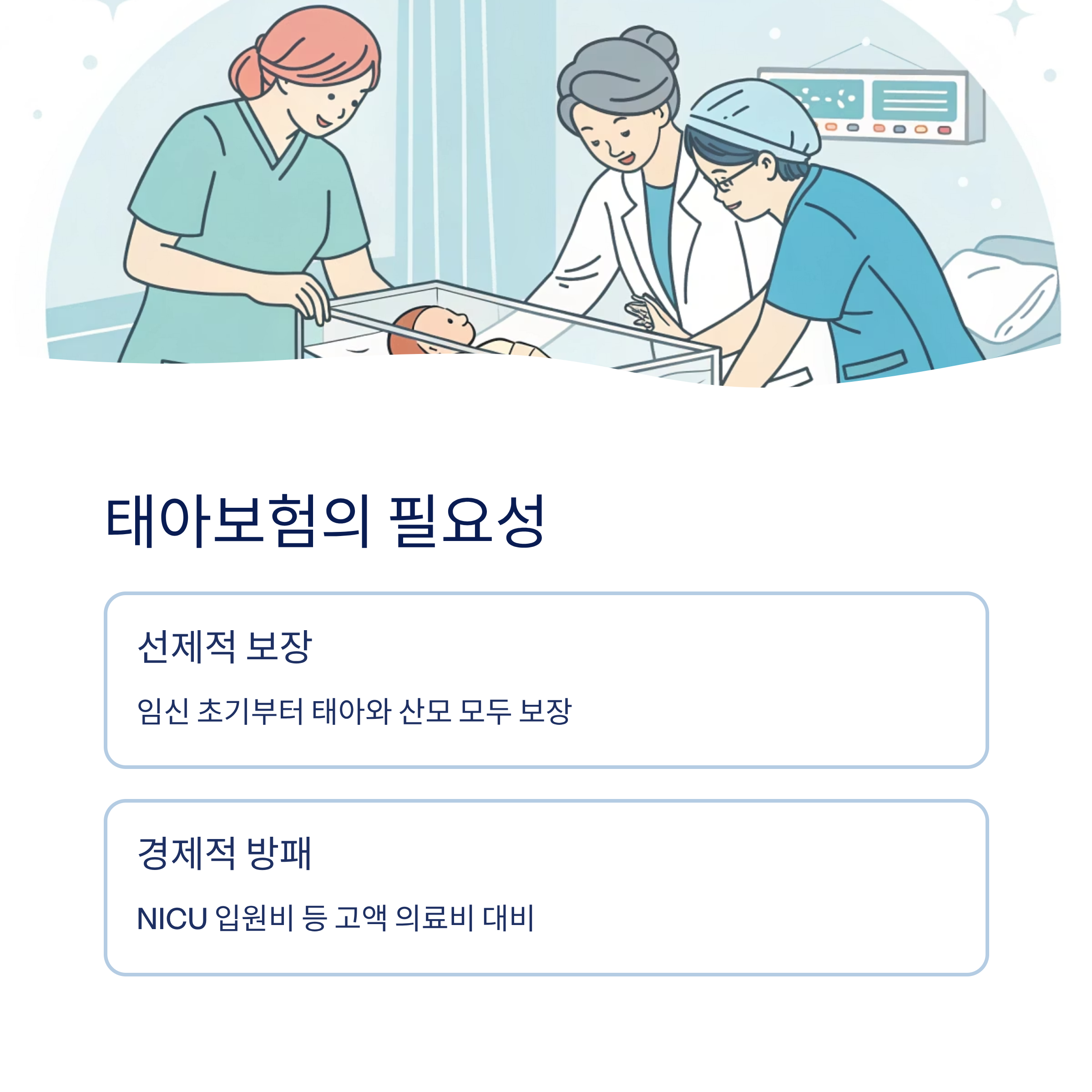 임신 중에는 예기치 못한 일이 언제든 생길 수 있어서, 대비하지 않으면 갑작스러운 의료비 부담으로 이어질 수 있어요. 실제로 신생아 집중치료실(NICU) 입원은 하루에 수십만 원씩 비용이 발생하고, 보험 없이 감당하기에는 큰 부담이 될 수 있답니다. 그래서 태아보험은 단순한 안심을 넘어, 경제적 방패 역할도 해주는 중요한 수단이에요.