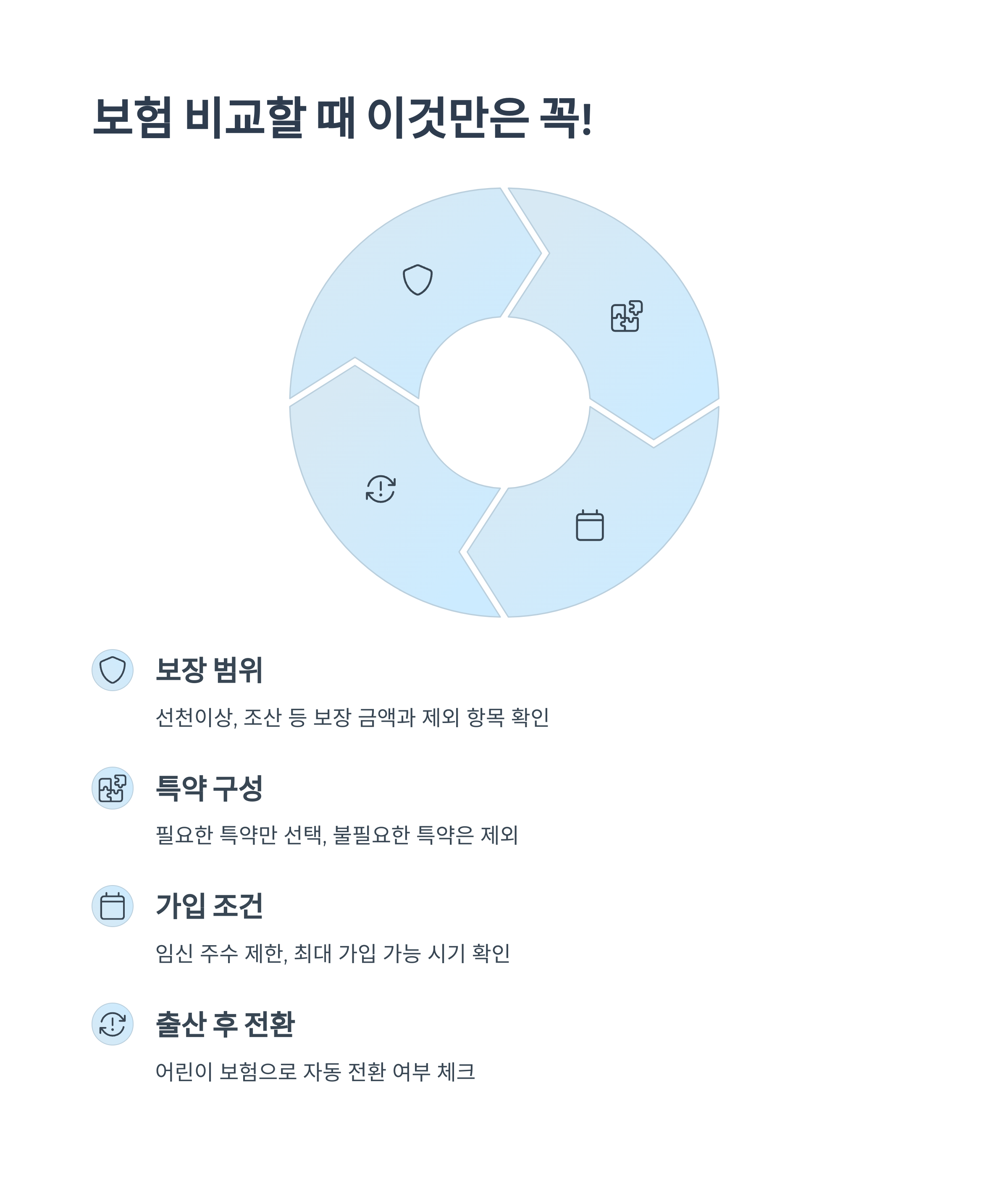 | 출산 후 전환 | 어린이보험으로 자동 전환 여부 | 보장 연속성 확인 |