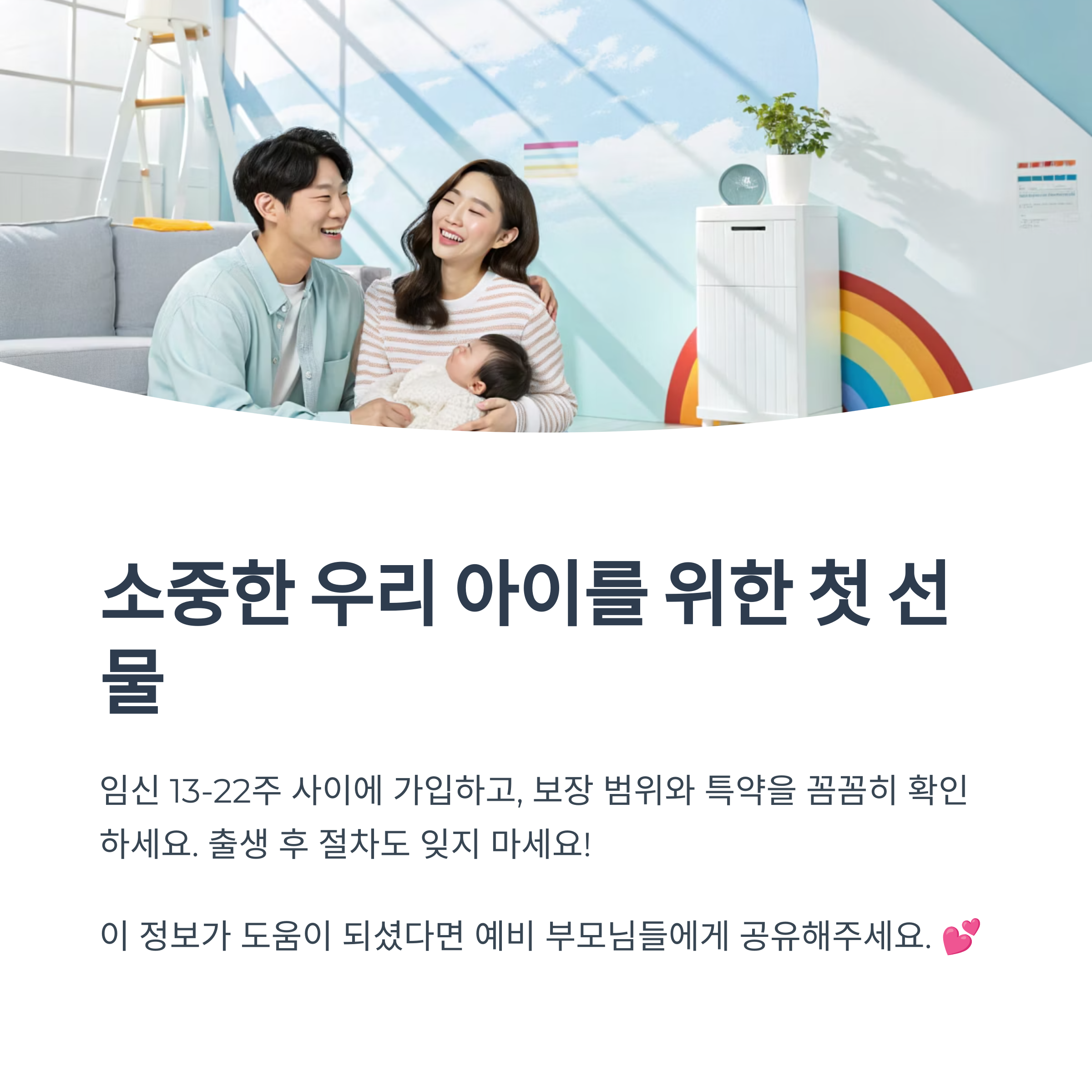태아 보험은 건강을 위한 사전 준비이자 심리적 안정감을 주는 장치예요. 무엇보다 갑작스러운 의료비 지출에서 가족을 보호해줄 수 있다는 점에서 가치가 높답니다.