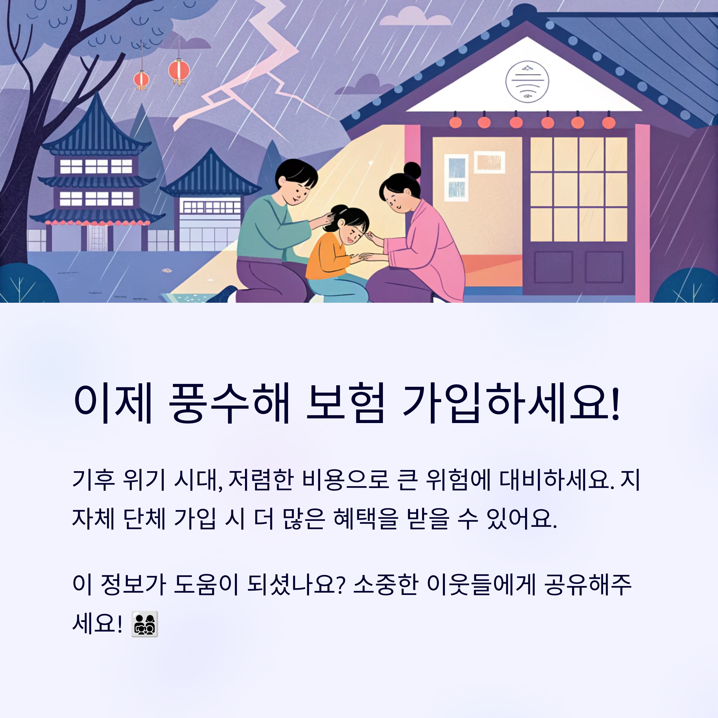 기후 위기로 인해 점점 잦아지고 있는 태풍, 폭우, 홍수, 강풍 등 자연재해로부터 재산을 보호할 수 있는 방법 중 하나가 바로 풍수해 보험이에요. 정부가 일정 부분 보험료를 지원해주는 공공성 높은 보험 제도인데요, 저렴한 비용으로 큰 위험에 대비할 수 있어 주목받고 있답니다.