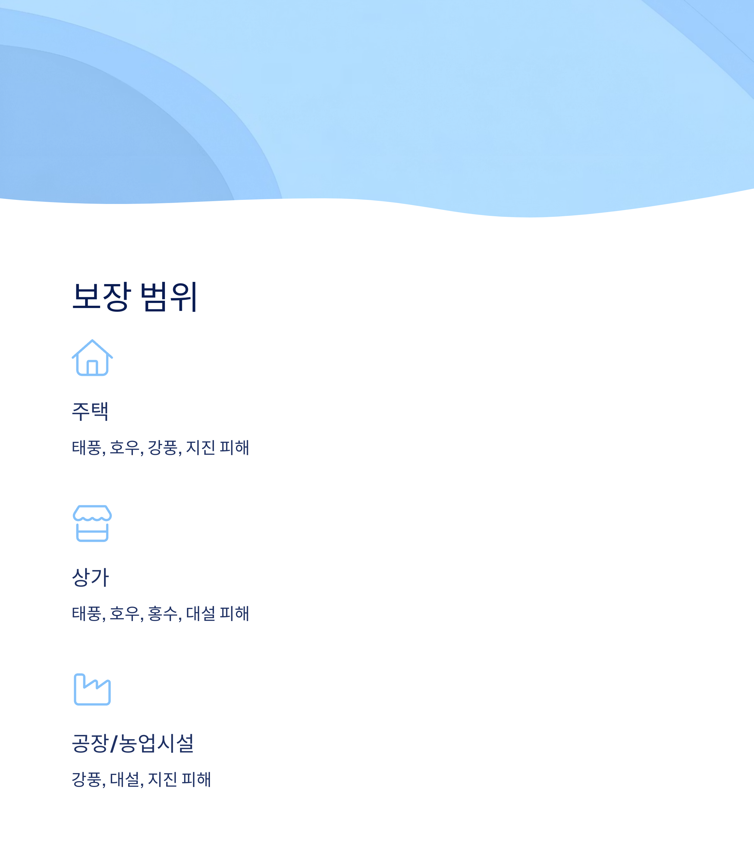 | 공장 | 강풍, 대설, 지진 | 기계 손상은 별도 |