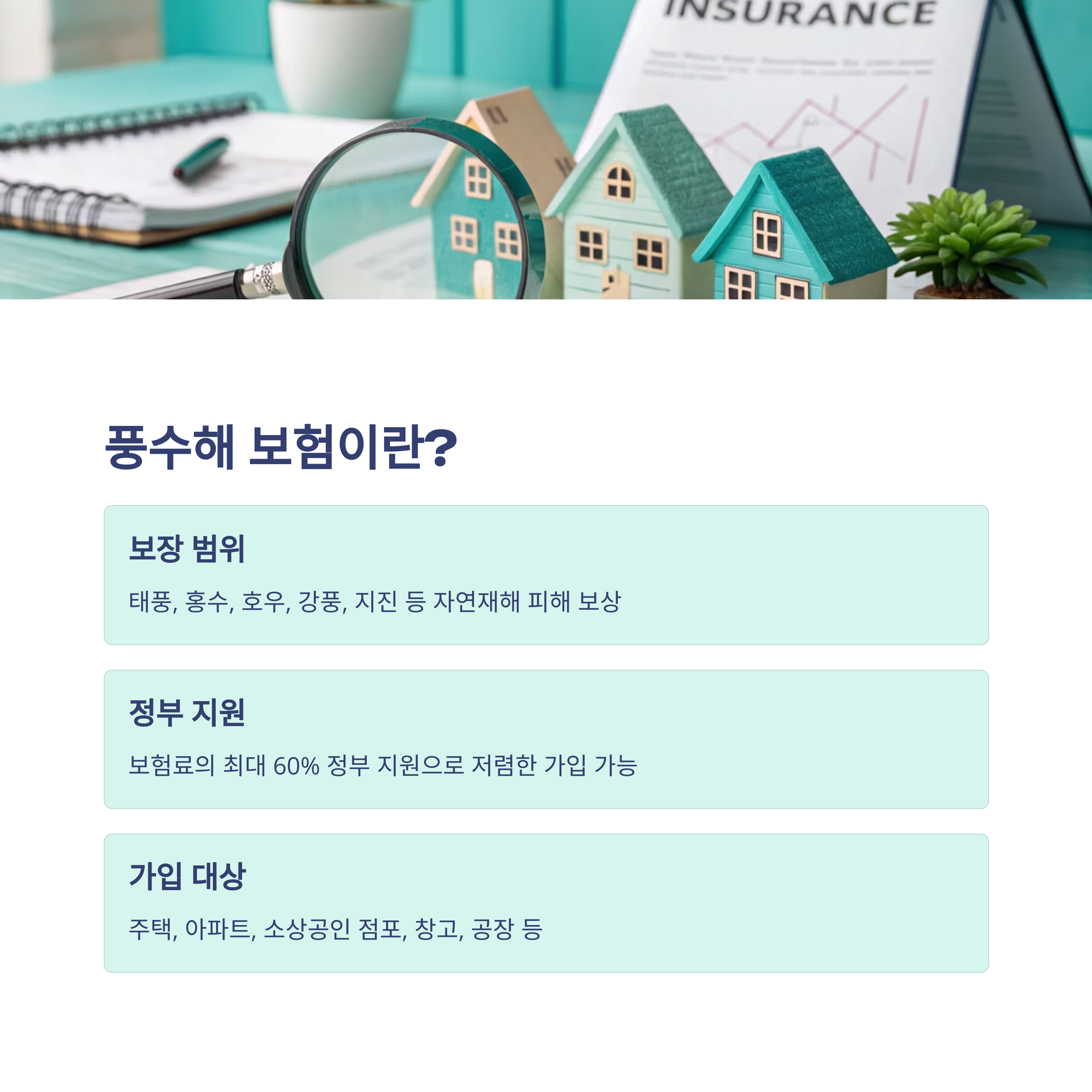 풍수해 보험은 태풍, 홍수, 호우, 강풍, 풍랑, 해일, 지진 등 다양한 자연재해로 인한 피해를 보상해주는 보험이에요. 이름 그대로 '바람과 물의 재해'를 대상으로 하는 보험이죠. 주로 주택이나 상가, 공장 등의 건물이나 그 안의 재산을 보호하는 용도로 많이 가입해요.
