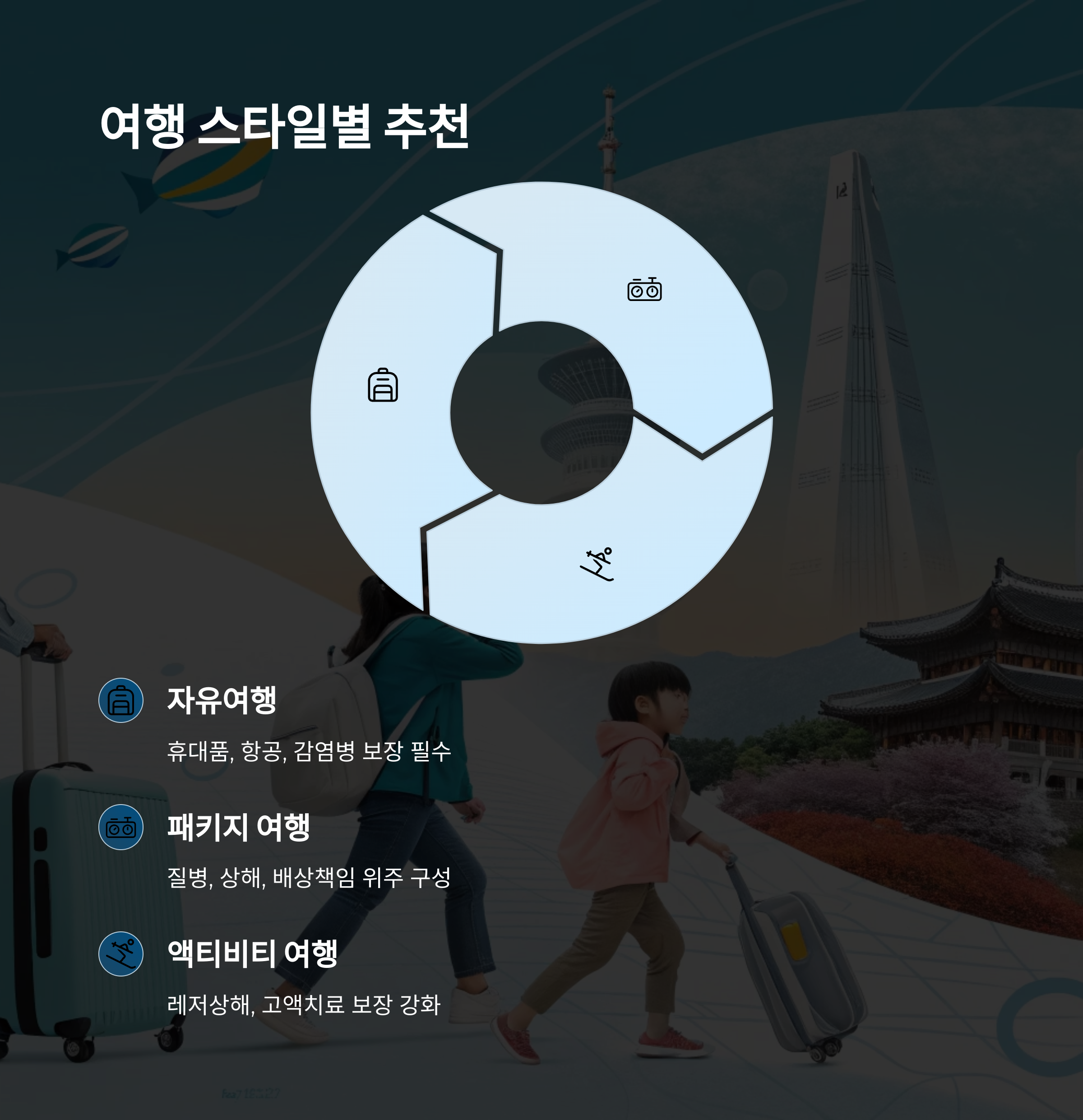 다음은 여행 스타일별로 어떤 보험 조합이 잘 어울리는지 추천해볼게요. 자유 여행파, 액티비티 마니아, 패키지족 등 유형에 따라 딱 맞는 보험이 다르니까 꼭 체크해봐요. 🙌