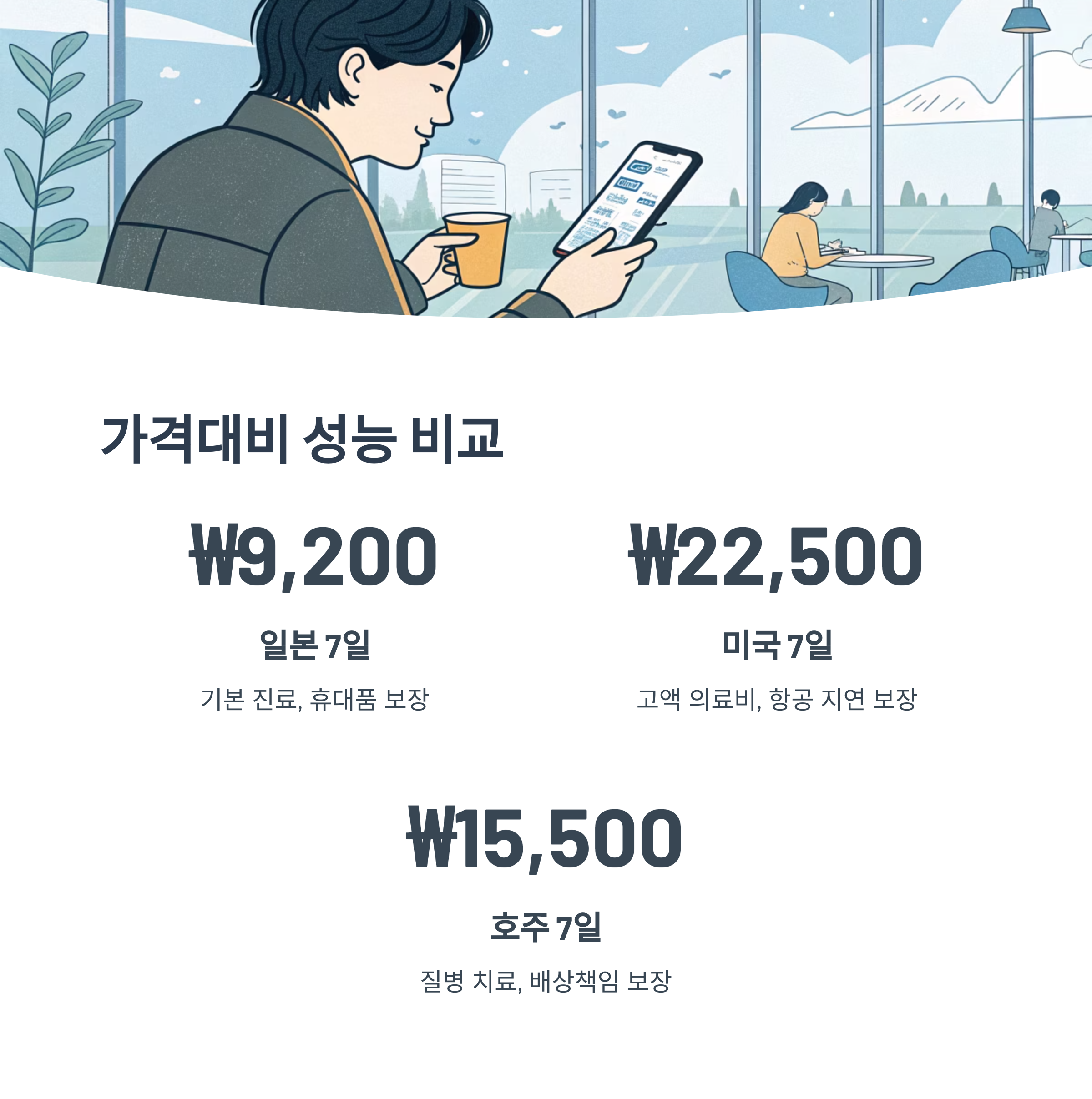 예를 들어, 1주일짜리 일본 여행을 간다고 가정했을 때, 1만 원대 보험도 꽤 많은 항목을 커버해줘요. 반면, 같은 기간 미국 여행은 의료비가 비싸기 때문에 보장금액이 높은 플랜을 선택해야 해요. 즉, '목적지'에 따라 가성비가 완전히 달라지는 셈이죠.