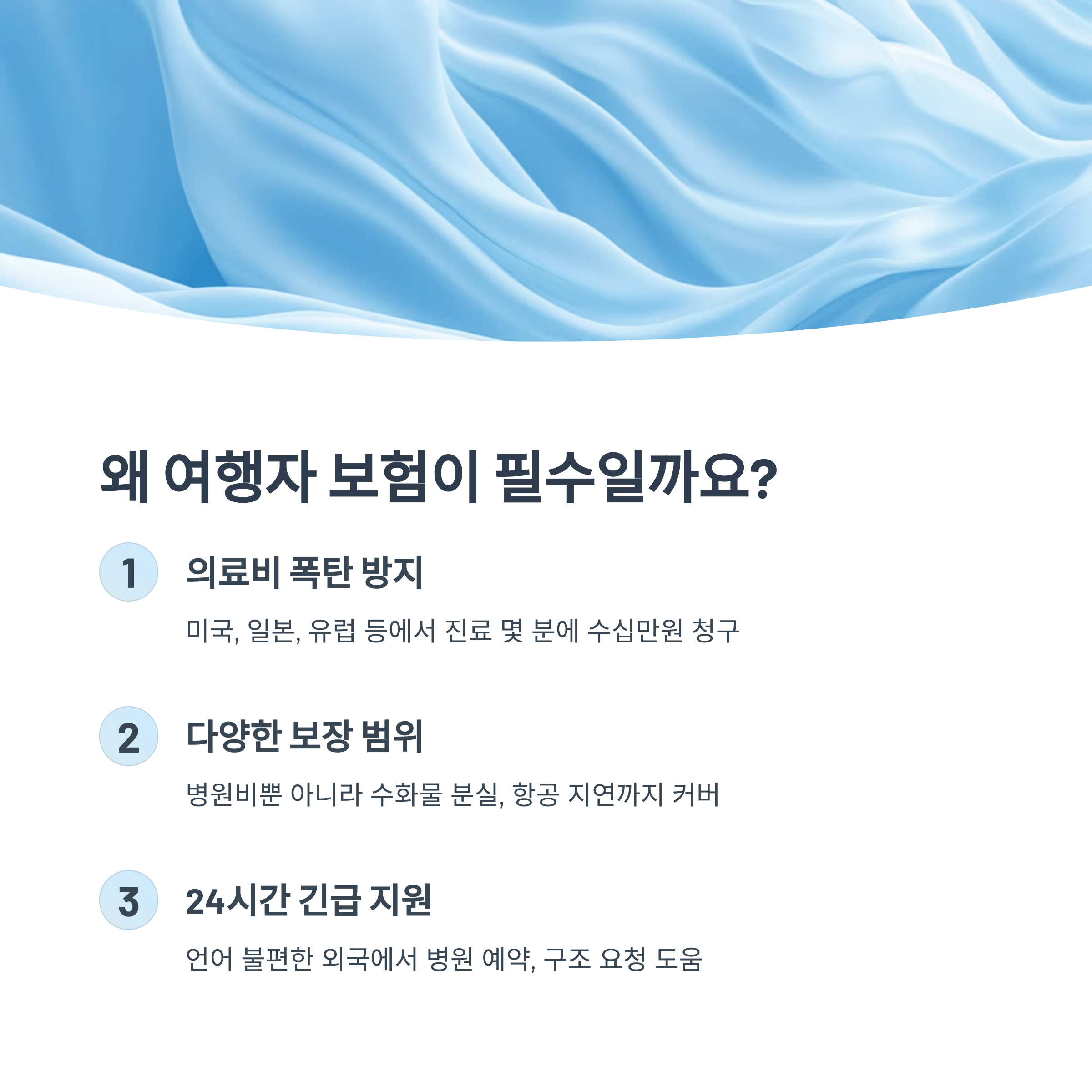 해외에서 갑자기 병원에 가게 되는 상황은 누구에게나 일어날 수 있어요. 특히 미국이나 일본, 유럽 등 의료비가 비싼 나라에서는 단 몇 분의 진료에도 수십만 원이 나올 수 있답니다. 국내에서 상상할 수 없는 금액이 부과되기 때문에, 사전에 대비하지 않으면 여행 자체가 악몽이 될 수 있어요.