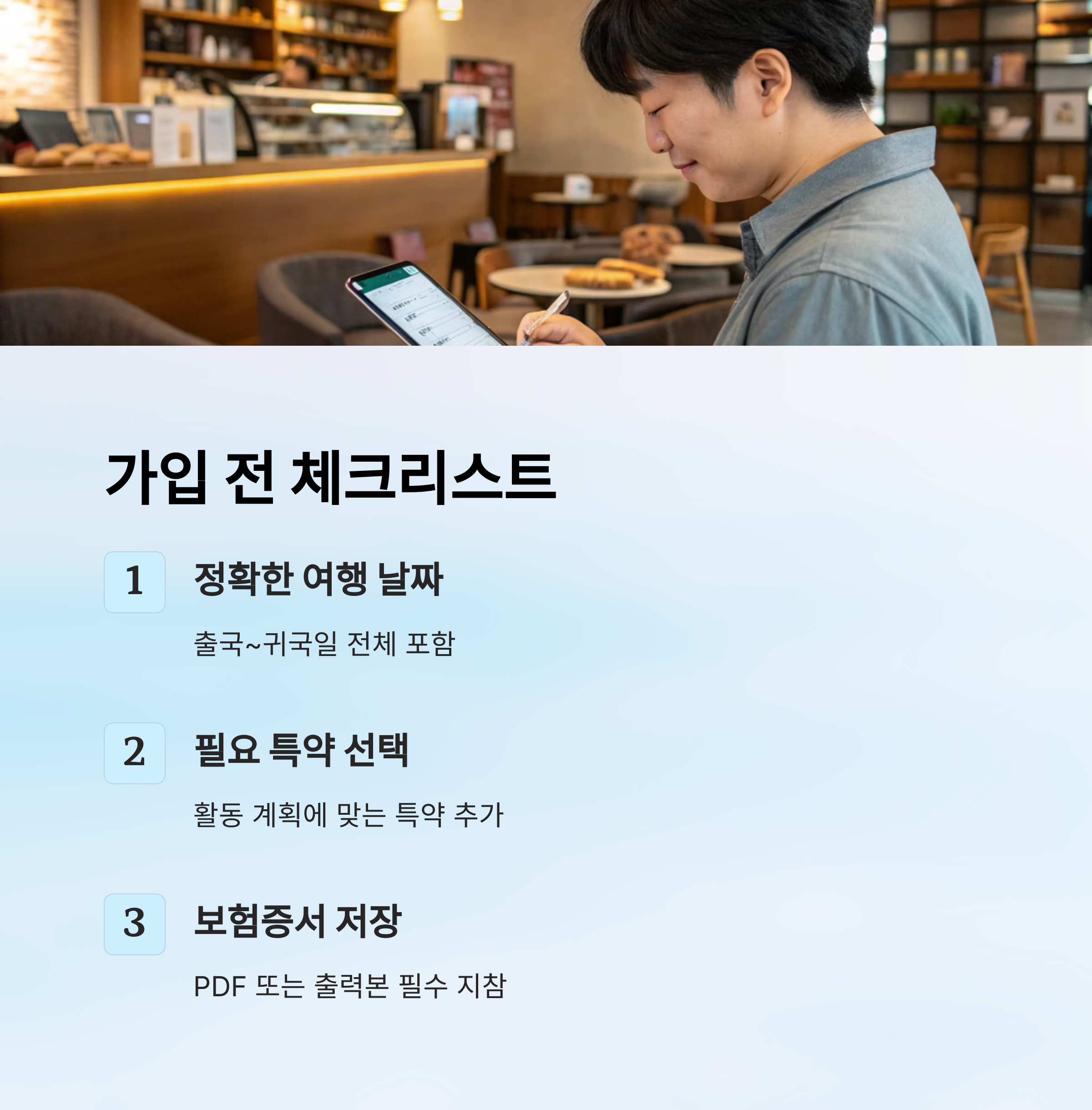 이제 여행 보험의 중요성과 다양한 상품, 비교 방법까지 알았으니, 실전에서는 어떻게 가입하는 게 가장 좋은지도 알아야겠죠? 막상 가입하려고 보면 옵션이 많고 헷갈리는 게 사실이에요. 그래서 실제 가입할 때 유용한 꿀팁들을 정리해봤어요. 여행 전에 꼭 체크해보세요! ✅