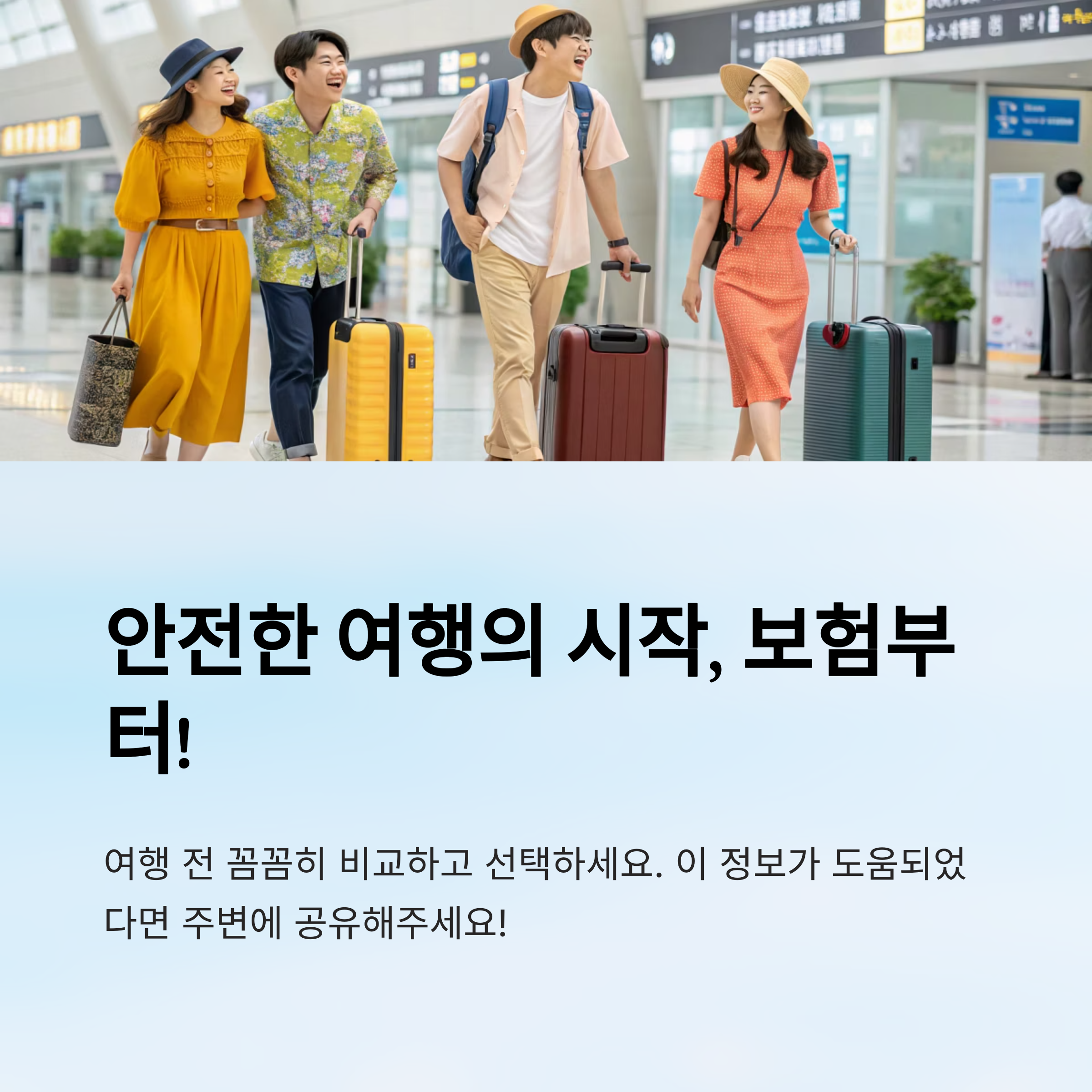 이처럼 여행 보험은 ‘혹시 몰라서’가 아닌 ‘꼭 필요한’ 준비물이에요. 특히 가족 단위나 고령자의 경우 건강 리스크가 크기 때문에 보험 선택에 더 신중해야 해요. 요즘은 각 보험사에서 다양한 특약을 제공하고 있어 선택지도 많아졌고, 비교가 더욱 중요해졌어요.