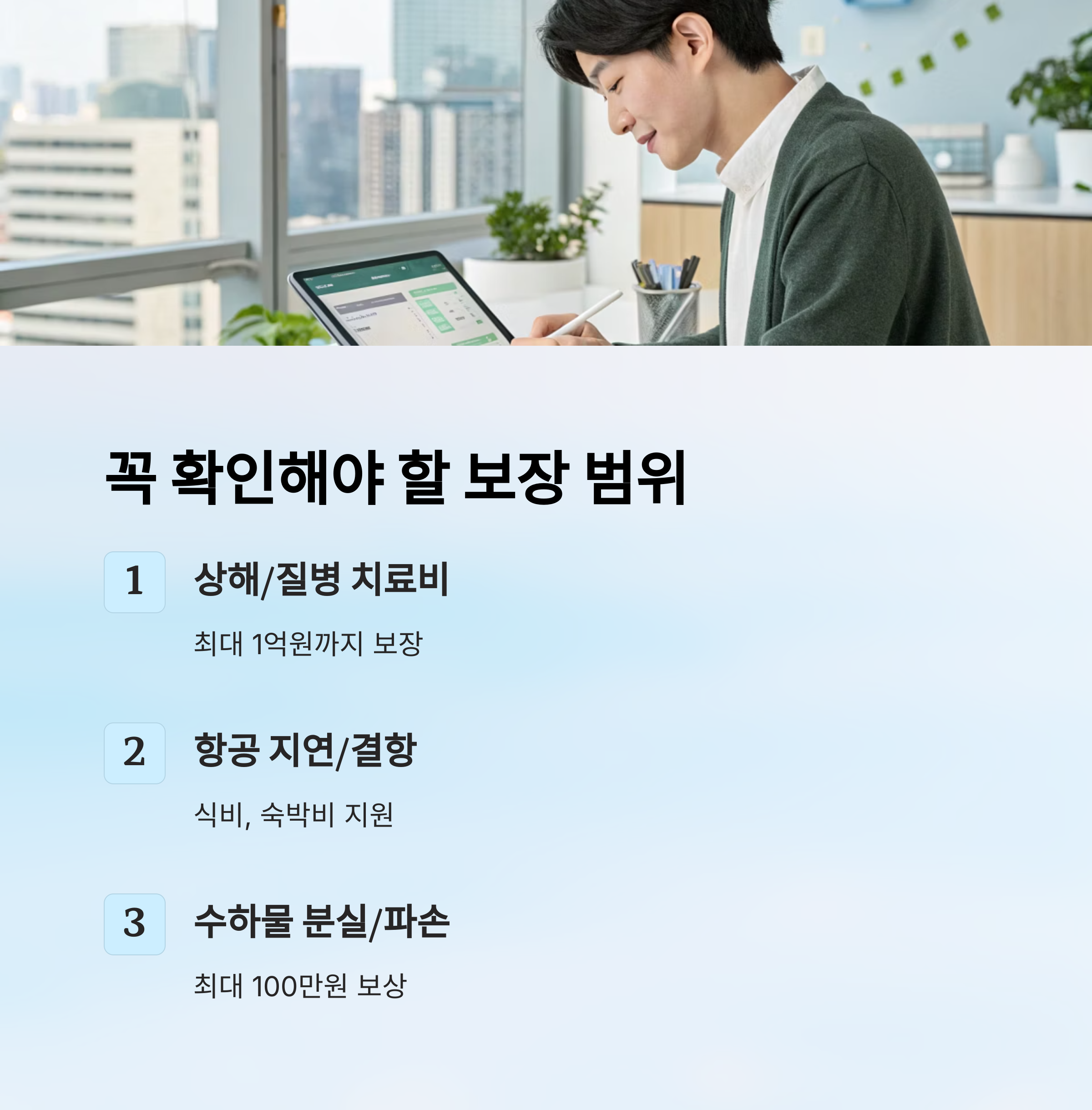 보험사에 따라 동일한 항목이라도 보장 금액이 천차만별이에요. 예를 들어 상해 치료비가 어떤 곳은 3천만 원, 다른 곳은 1억 원으로 차이가 크죠. 항공 지연 보상도 5만 원에서 30만 원까지 다양해요. 보장 항목이 같은지만 볼 게 아니라, 얼마까지 보장하는지를 꼭 확인해야 해요.