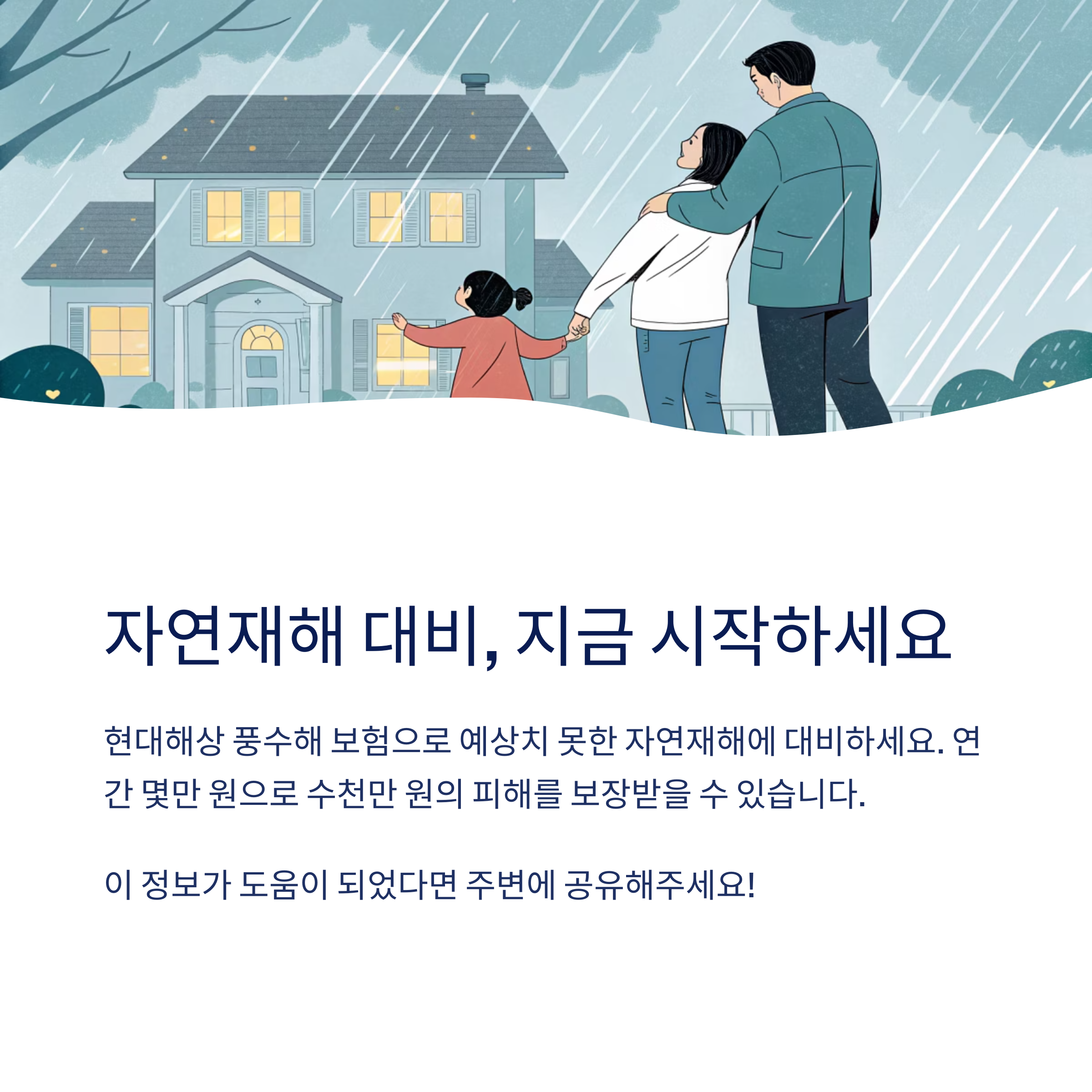 자연재해가 잦아지고 있는 2025년, 이제는 누구나 풍수해에 대비해야 하는 시대가 되었어요. 특히 여름철 집중호우와 태풍, 강풍, 홍수 등으로 인해 크고 작은 피해를 입는 일이 빈번하죠. 이런 상황에 대비할 수 있는 대표적인 상품이 바로 현대해상 풍수해 보험이에요.