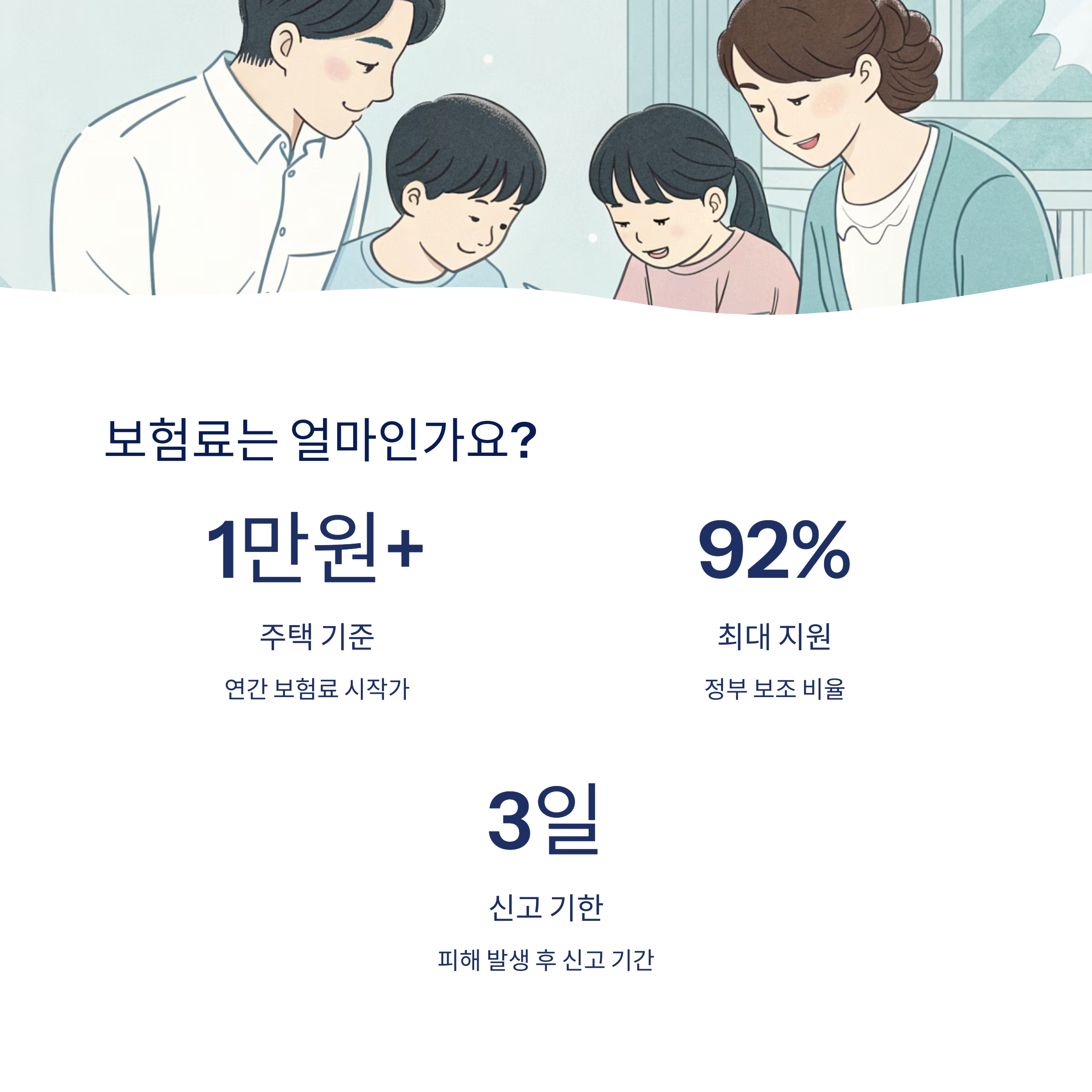 정부가 보험료의 약 50~90%를 보조해주기 때문에 누구나 부담 없이 가입 가능해요. 특히 재난취약지역이나 농촌 지역은 보조 비율이 높아 더욱 유리하죠. 주택 한 채를 기준으로 가입하면 연간 수천 원에서 몇만 원 수준으로 유지가 가능해요.