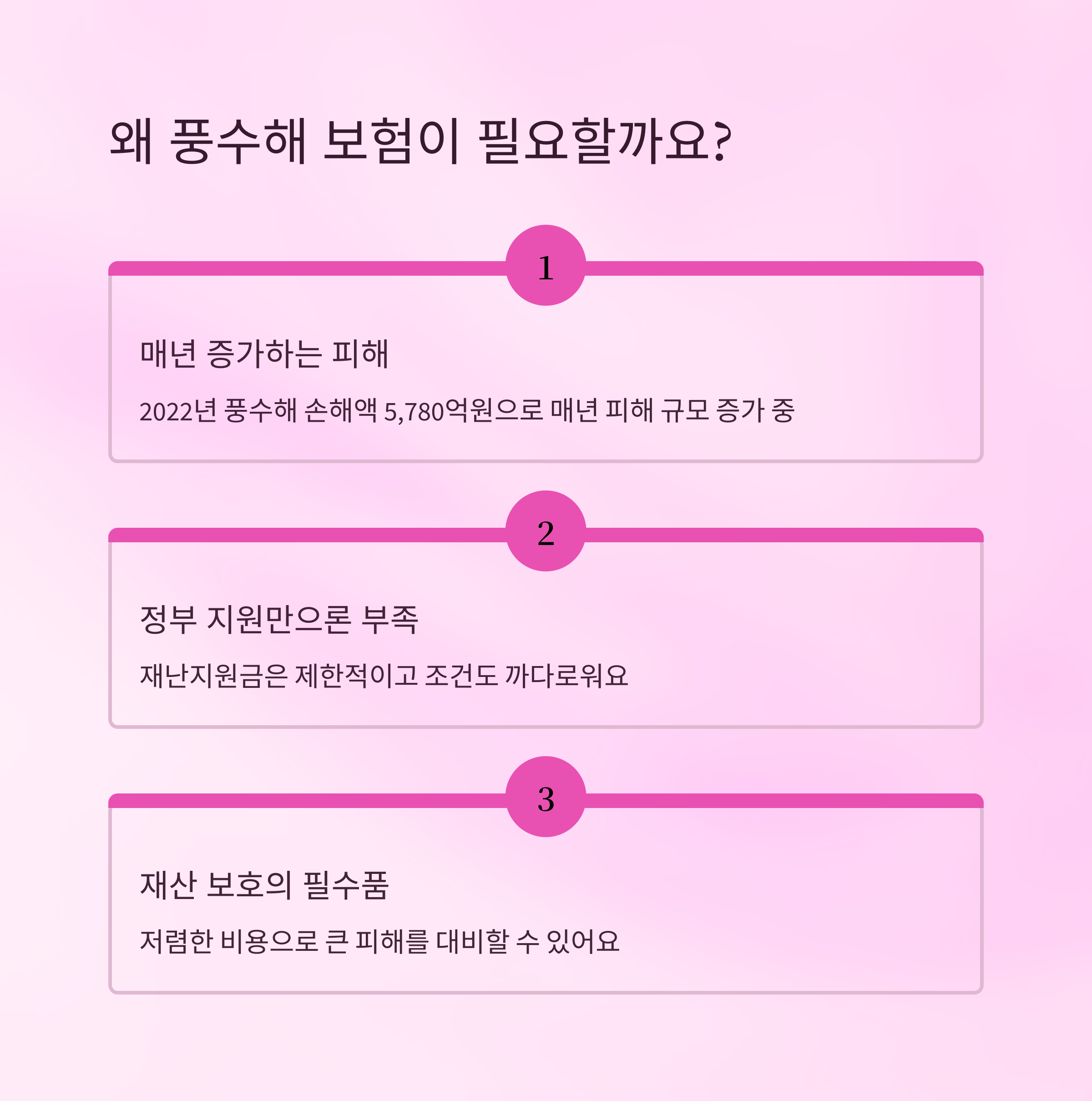 대한민국은 지리적으로 태풍, 장마, 집중호우 등 다양한 자연재해의 영향을 자주 받아요. 특히 여름철에는 주택 침수, 차량 침수, 농작물 파괴 등 예기치 못한 피해가 빈번하게 발생하죠. 이로 인해 수천만 원에서 수억 원대의 손실을 입는 경우도 많답니다.