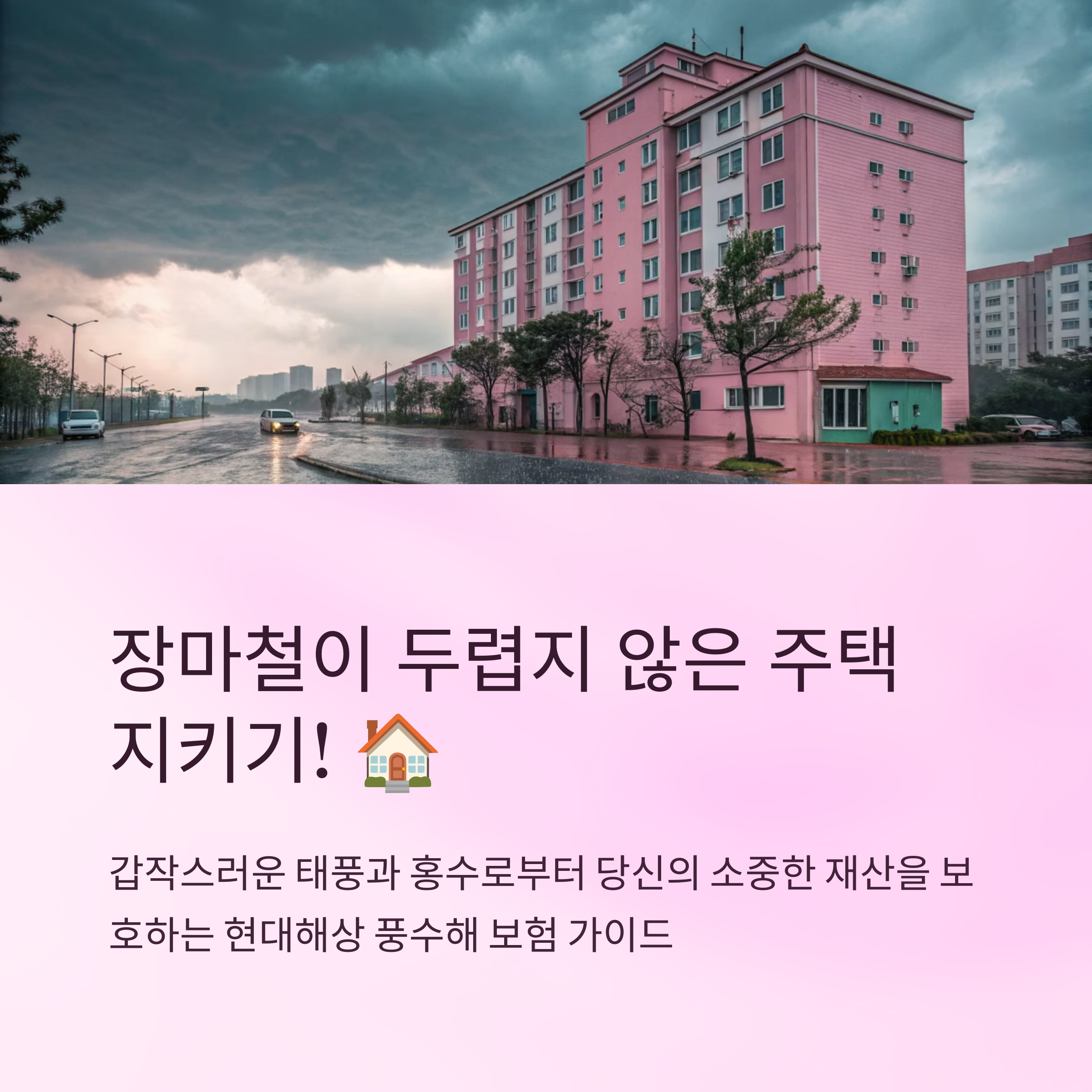 반면 현대 해상의 풍수해 보험은 자연재해에 의한 건물 및 자산 손실을 집중적으로 보장하기 때문에, 기후 변화와 이상 기상 현상이 잦아지는 요즘에는 훨씬 현실적인 대안이에요. 특히 장마철이나 태풍 시즌이 걱정될 때는 강력한 방패 역할을 해줄 수 있어요.