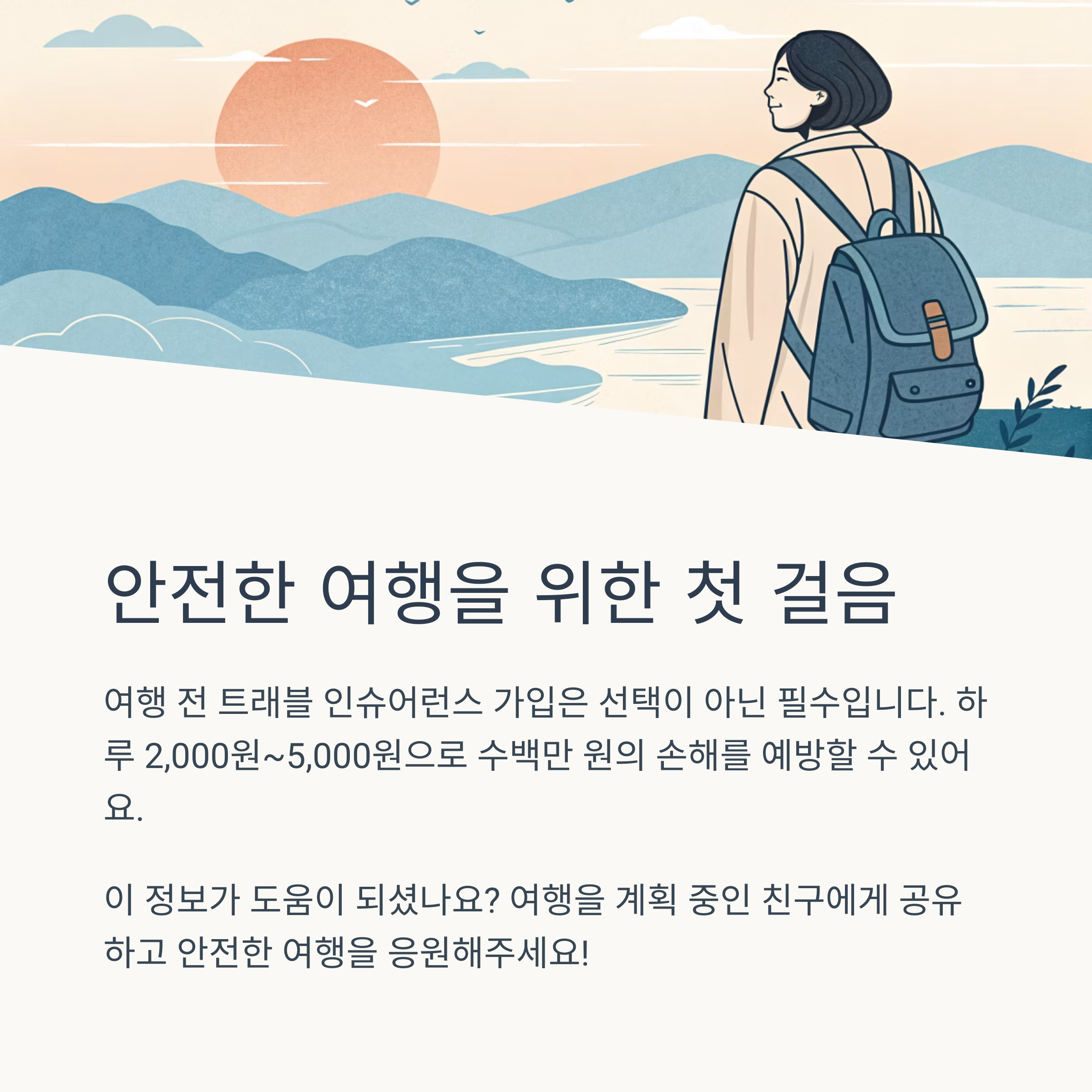 그런 상황에 대비하기 위해 가입하는 것이 travel insurance예요. 보험 하나만 잘 들어도 몇 백만 원의 손해를 피할 수 있는 만큼, 여행자 보험에 대해 제대로 이해하고 비교하는 게 정말 중요하답니다. 오늘은 그 기본부터 보험사별 비교까지 쉽고 자세히 알려줄게요!✈️